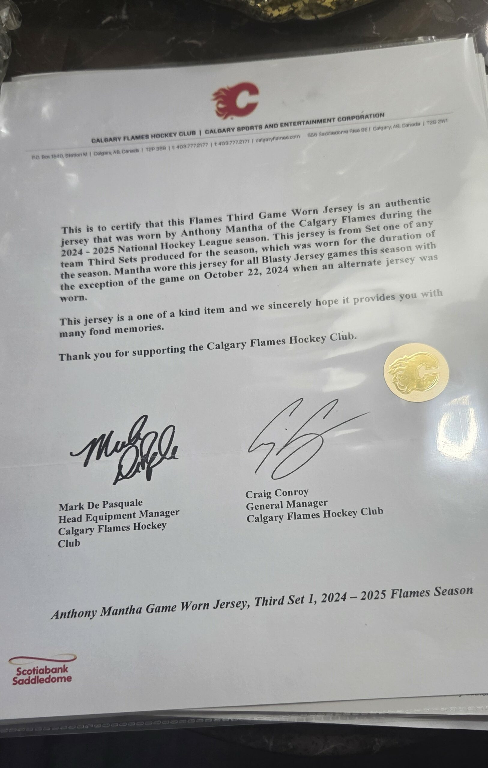 CALGARY FLAMES Anthony Mantha #39 Third Black Set 2024-25 Fanatics Airknit, size 58 w/ Playalberta patch $750
