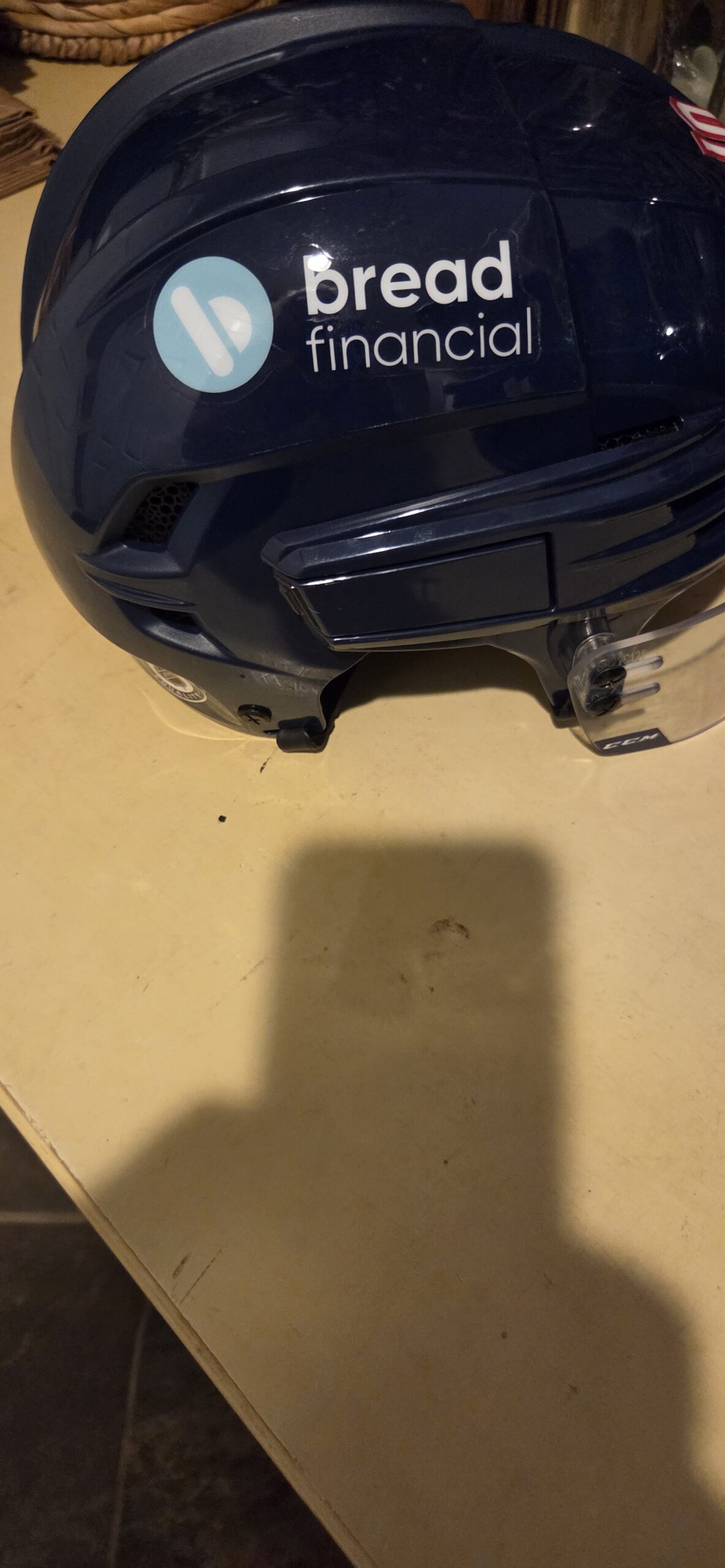 COLUMBUS BLUE JACKETS Liam Forty #19 Blue Bauer Helmet with shield Bread Financial patches $250