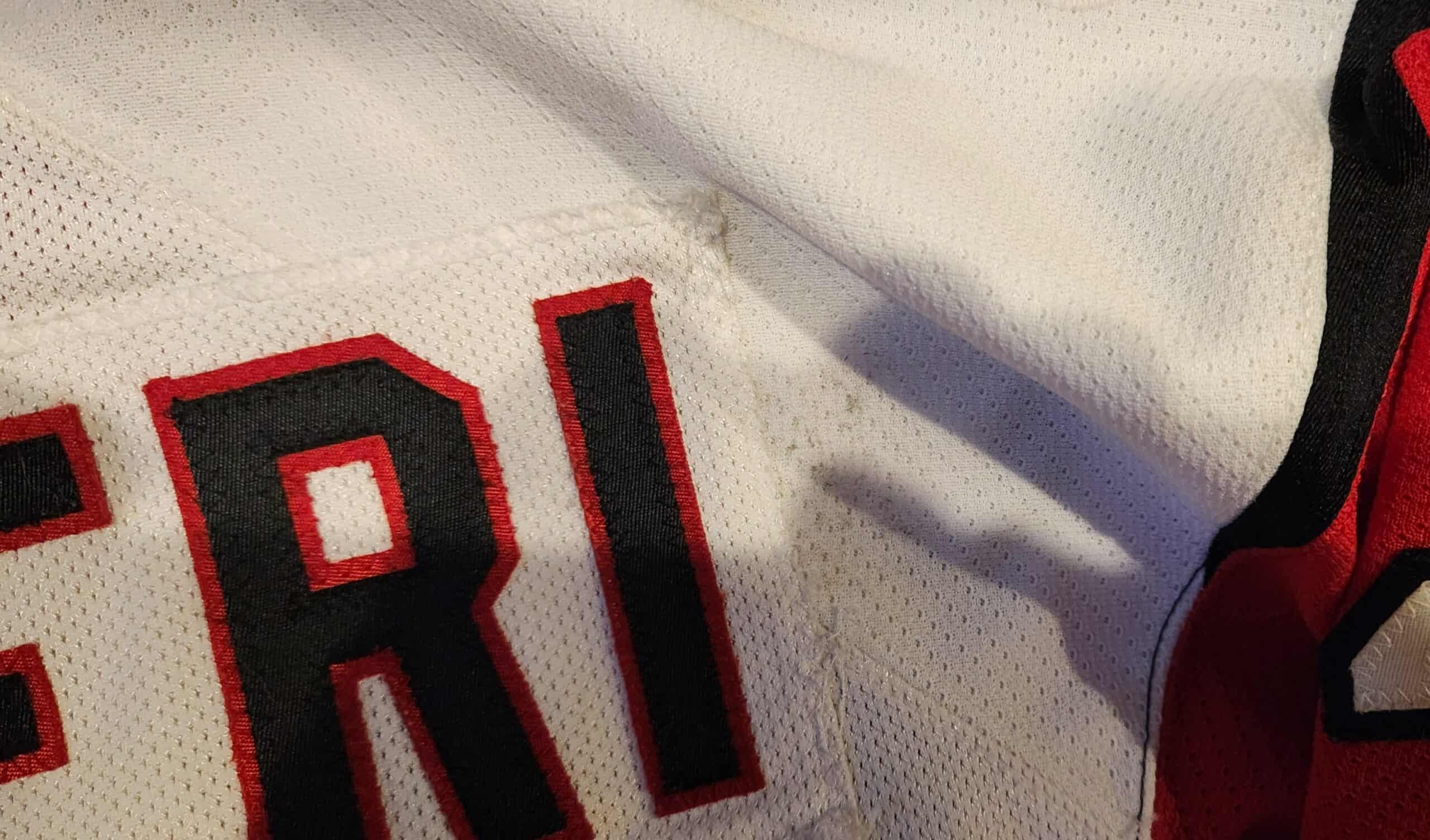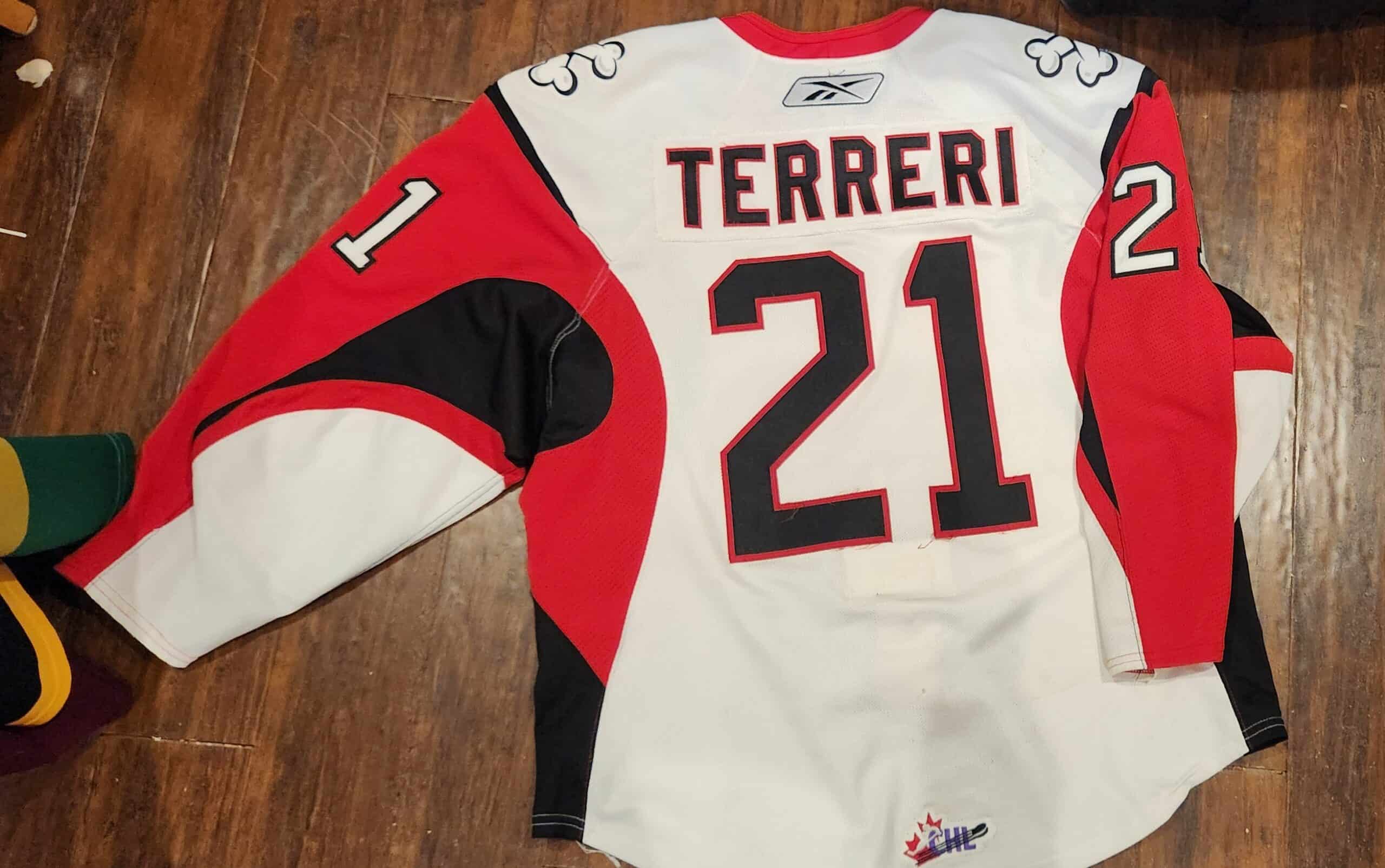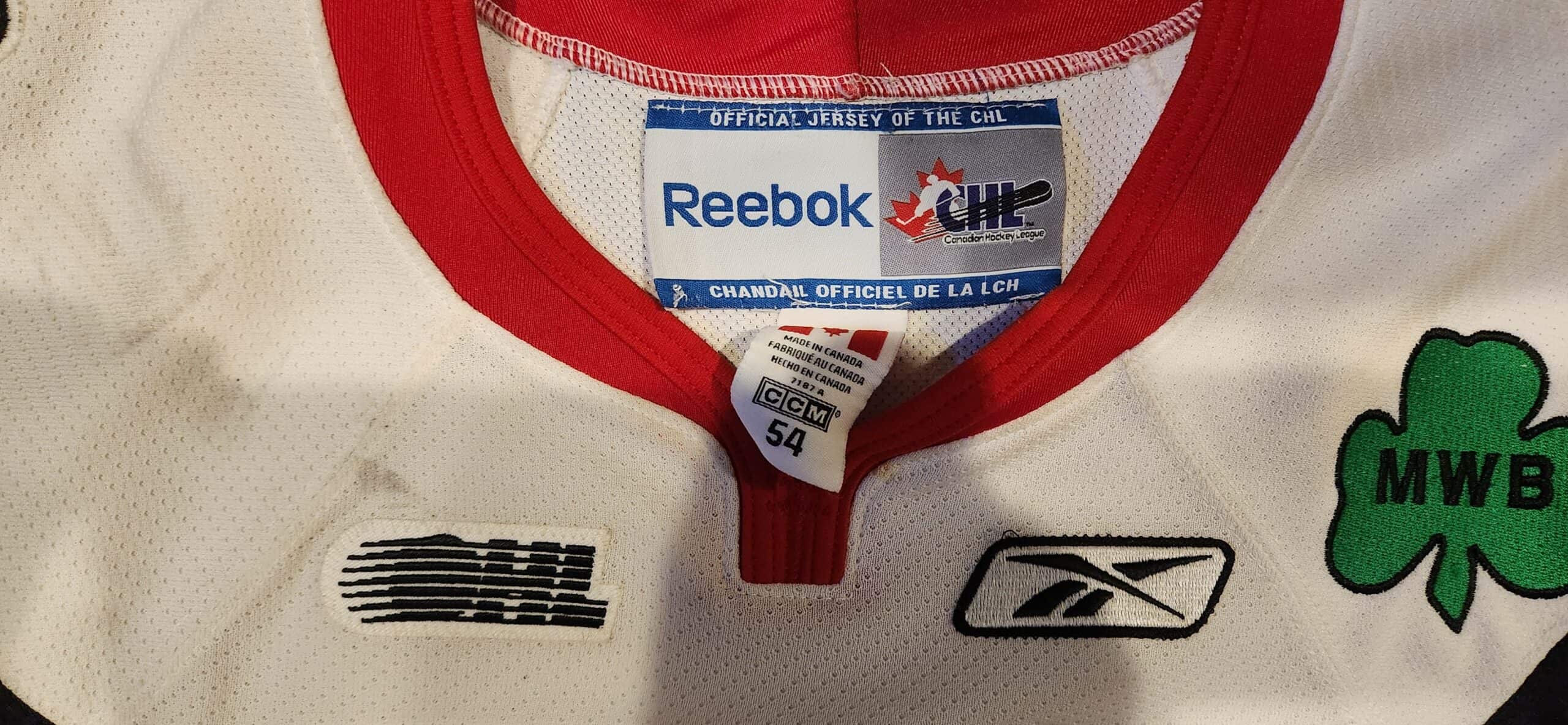 Niagra Icedogs Terreri #21 White Reebok Airknit size 54 w/ Shamrock patch for owners passing away $300