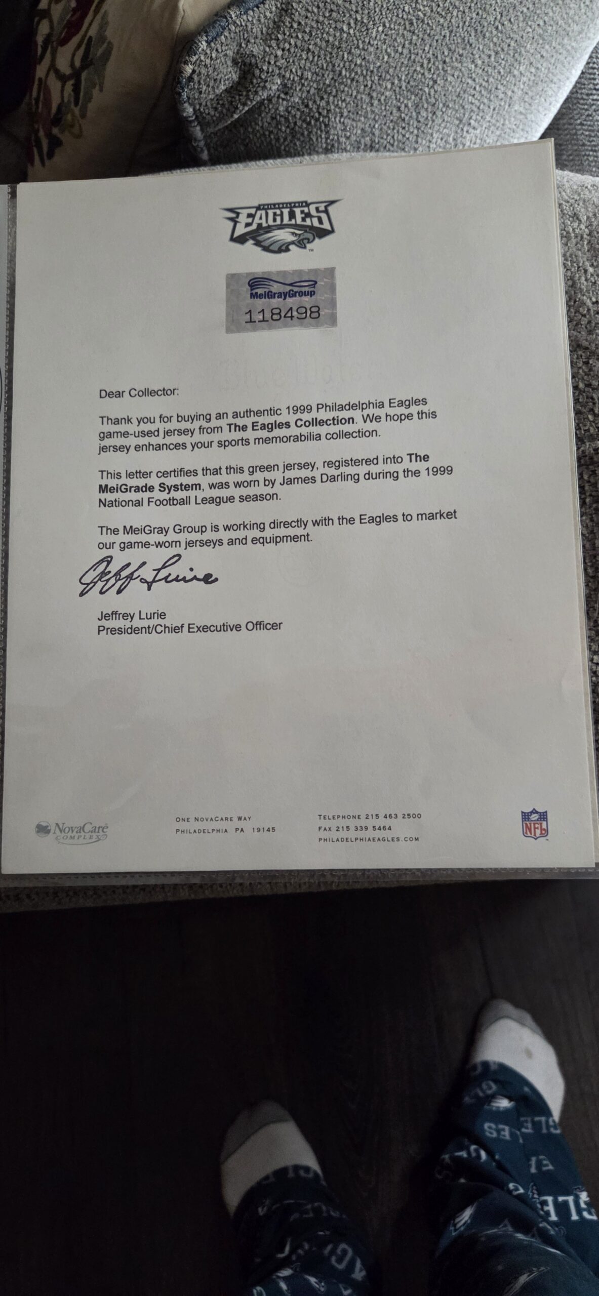 PHILADELPHIA EAGLES James Darling #57 green mesh , size 50 , 6″ LB Puma 1999 $350