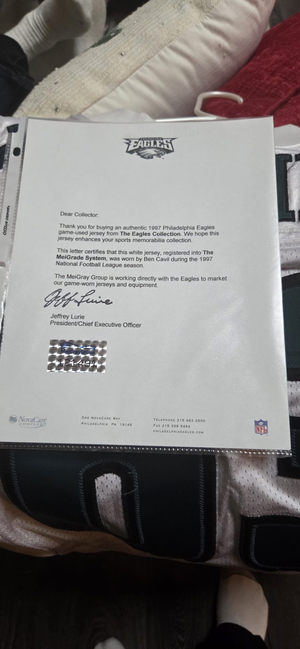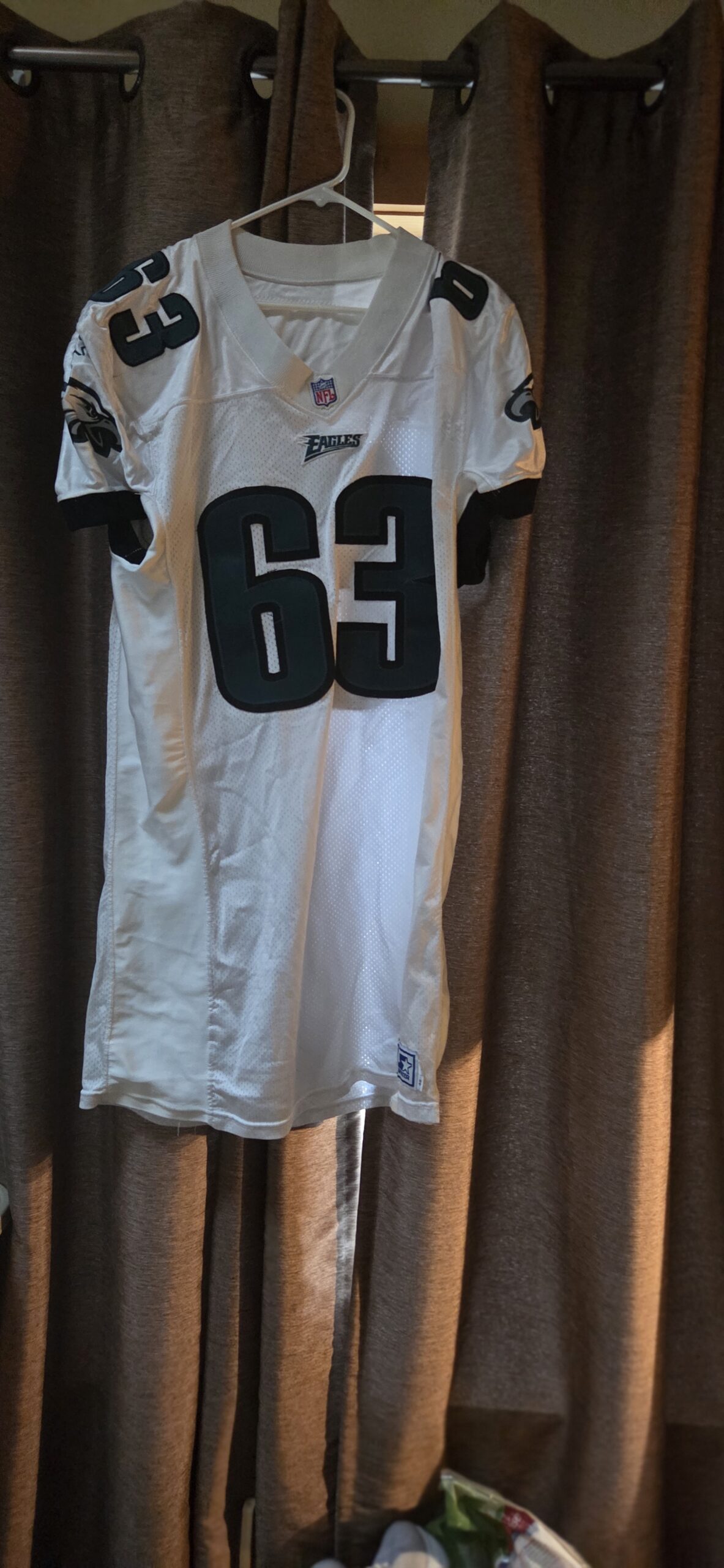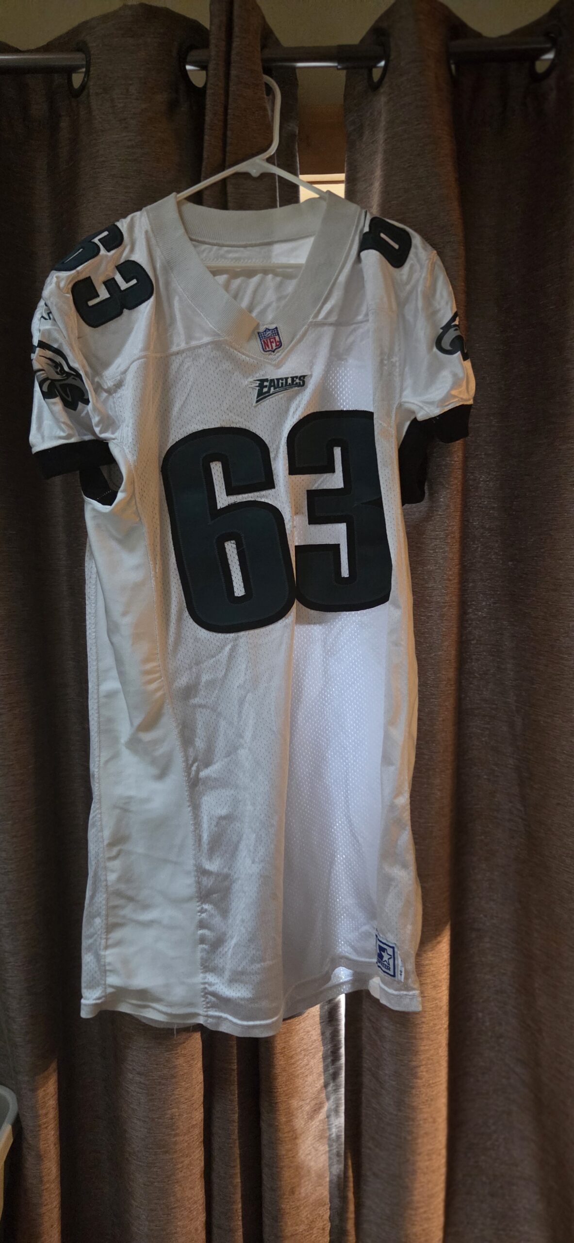 PHILADELPIA EAGLES Ben Canvil #63 White Starter Mesh size 48 L from 1997 $450 repairs